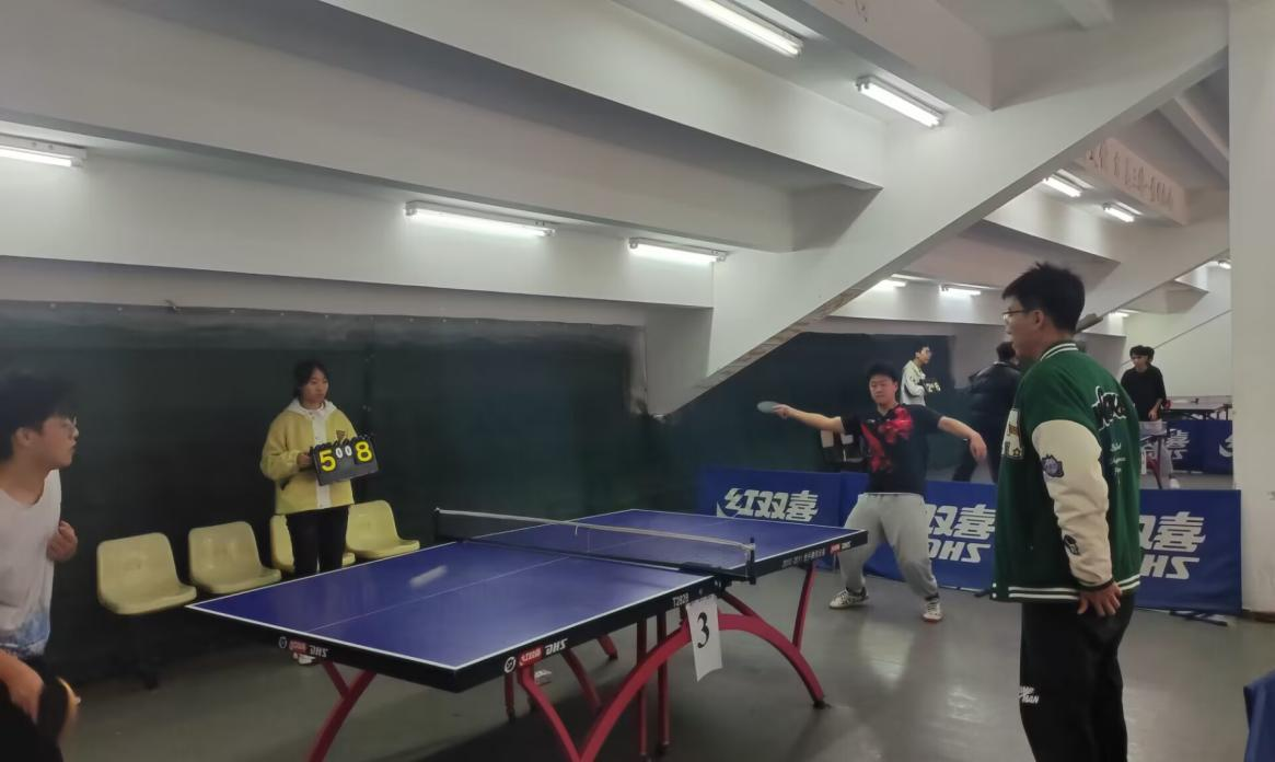 本次乒乓球赛分为单打和团体两种类型,采取淘汰赛制,由数理学院8名学生裁判进行计分。本着公平、公正、公开的原则,每位选手都铆足实力、全心投入比赛。接连不断的乒乓球碰撞声响彻在整个球馆中,比赛显得格外火热。参赛选手们有着独属于自己的运球方法,不仅有看似缓慢如羔羊,实则迅猛如豺狼的变速运球方式,亦有时刻加速、比较击球底力的运球方式。比赛双方怀揣着内心的坚毅,按照自己的运球方式,赋予乒乓球独特的速度。这是自我能力的展现,更是绽放自信的色彩。