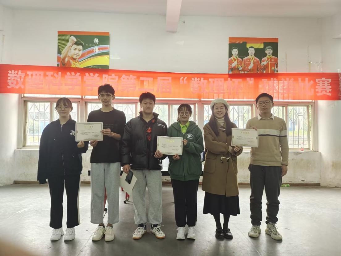 为彰显新时代大学生的新风采、新风貌,激发同学们对于体育运动的热爱,3月24日,数理科学学院第三届“数理杯”乒乓球赛于阳光体育场乒乓球馆正式拉开帷幕。我院共多名同学报名参赛,其中王善滋、蔡滟希分别取得男子单人赛、女子单人赛第一名;漆浩、王悦彬组,何稀、卢颖椒组,陈祥、蔡滟希组分别取得男子双人赛、女子双人赛、混合双人赛第一名。