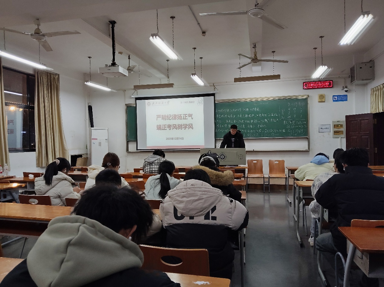 班会伊始,班长介绍,考风考纪是校园文明的重要体现,考场诚信是学生的立身之本。班会上,班主任们结合近年来典型的考试作弊案例,详细解读了《学生考试违纪处分规定》,深入剖析了作弊行为对个人学业、信誉及校园风气的危害。“分数诚可贵,诚信价更高”,老师们强调,真实的成绩是对自身学习的检验,更是对诚信品质的践行。同学们纷纷表示,将严格遵守考场规则,自觉抵制作弊行为,以诚信应考守护校园的公平正义,用实际行动维护良好的考风考纪。