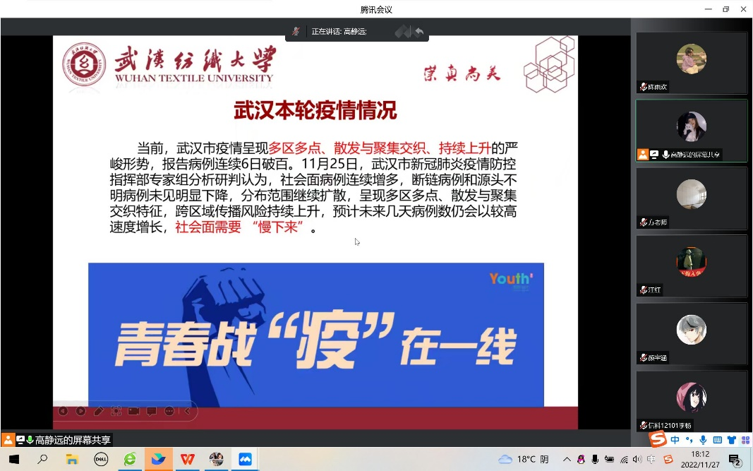 辅导员方媛向大家补充说明征兵入伍的细则以和注意事项。另外关于疫情防控、诚信应考、防诈骗等方面内容进行了宣讲。强调在当前疫情防控的严峻形势下,同学们做好个人防护,筑牢“每个人都是自己健康的第一责任人”意识。