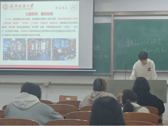 2024年11月10日,数理科学学院、微电子学院在崇志楼成功召开“青春担当、科创未来”的主题班会。本次主题班会旨在让同学们了解徐卫林校长在央视《开讲啦》为全国观众讲述纺织黑科技,以及通过告诉我们我校在各项重大赛事中屡获佳绩,鼓励我们多去参加各类赛事,充分展现学校的实力与学子们的青春担当。