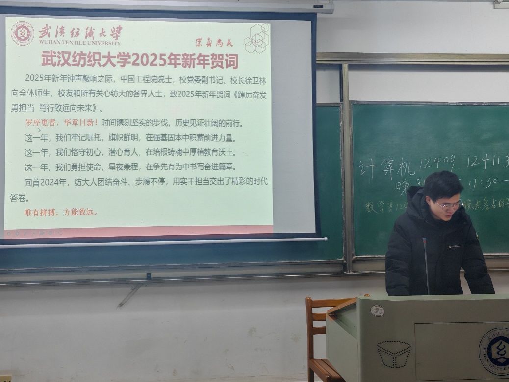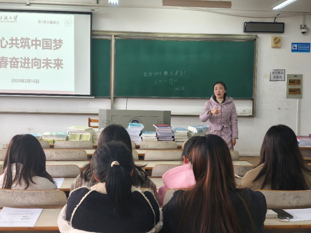 为帮助同学们顺利适应新学期生活,以饱满的精神状态投入到学习中,2025年2月16日晚,数理科学学院、微电子学院在崇志楼召开春季学期第一次主题班会。本次班会以“同心共筑中国梦,青春奋进向未来”为主题,学院全体领导、各班级班主任、辅导员以及全院同学参加此次班会,班会由各班班主任主持。