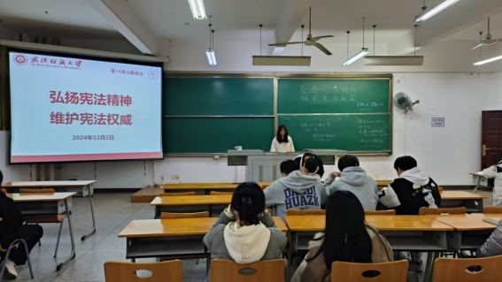 为弘扬宪法精神,维护宪法权威,12月1日晚,数理科学学院、微电子学院各班于崇礼楼召开第十四周主题班会,各班级班主任、各年级辅导员以及数理科学学院、微电子学院全体同学参加此次班会,本次班会由各班班长主持。
