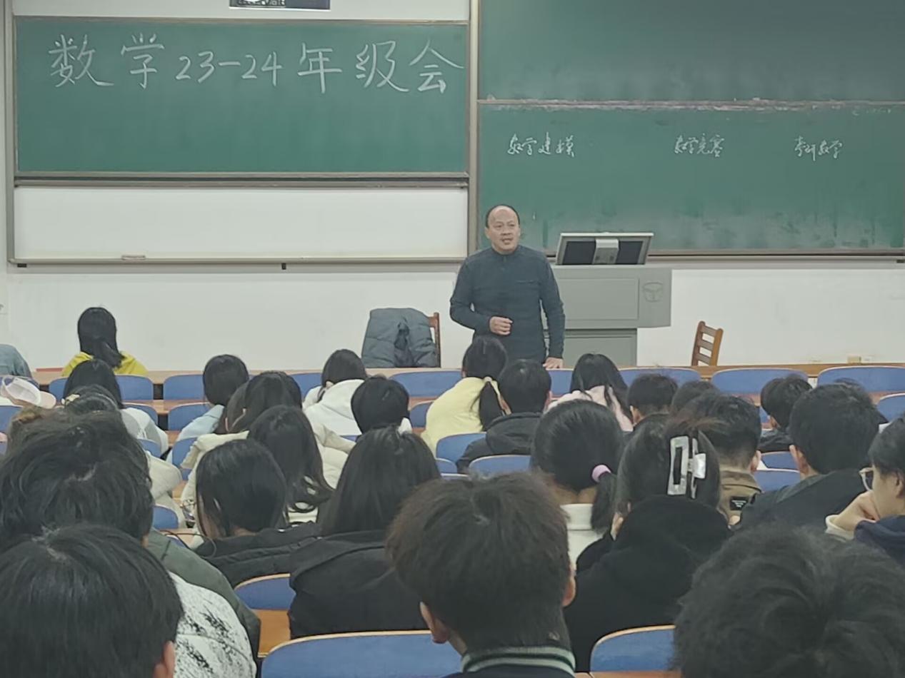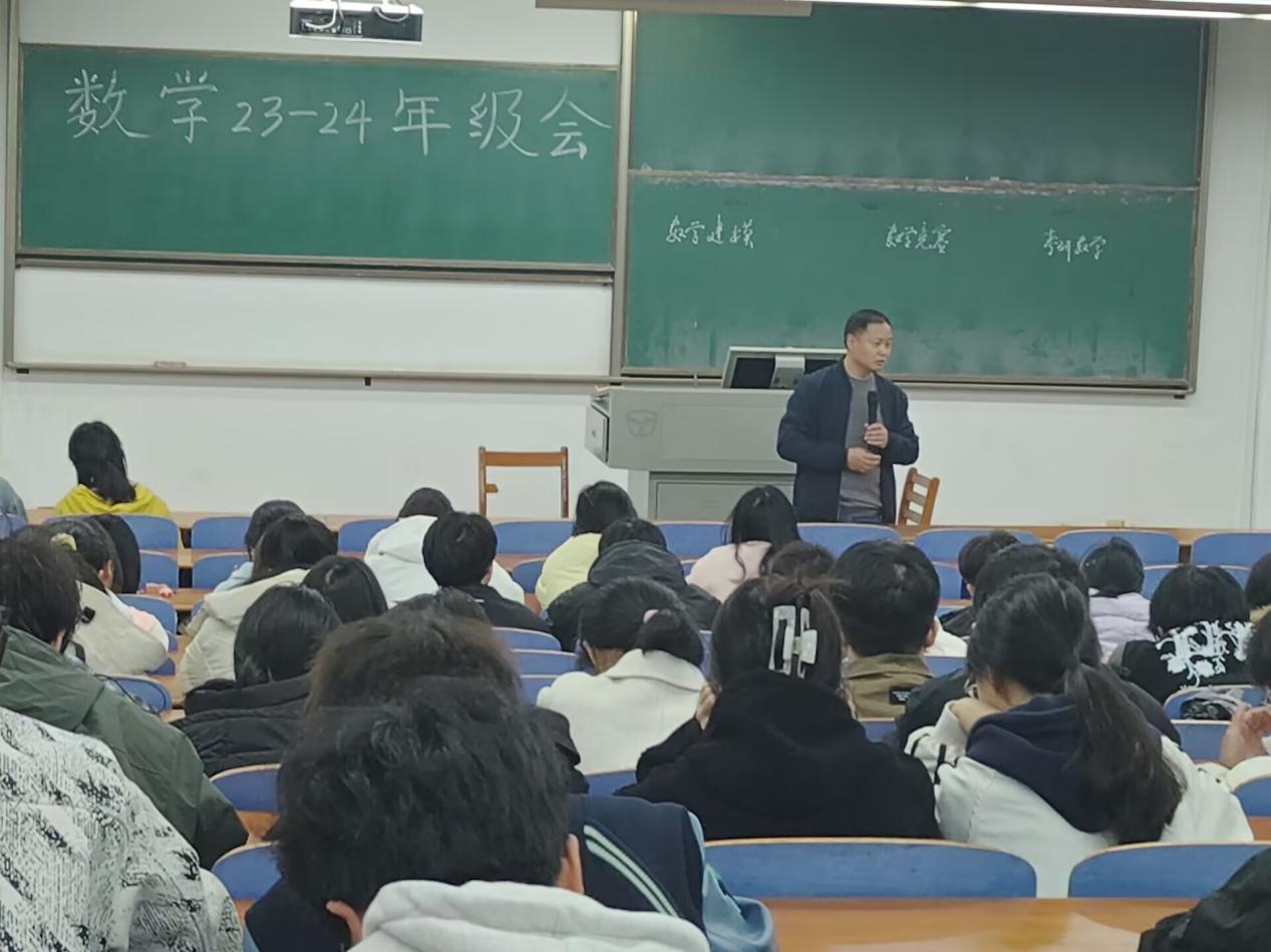 为了提高学生们的数学能力、营造昂扬向上的学习氛围,数理科学学院、微电子学院于3月2日在崇志楼召开了年级大会。此次会议由陈国鹏书记主持,毛耀老师主讲,大一、大二全体同学参加。