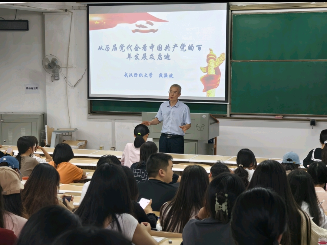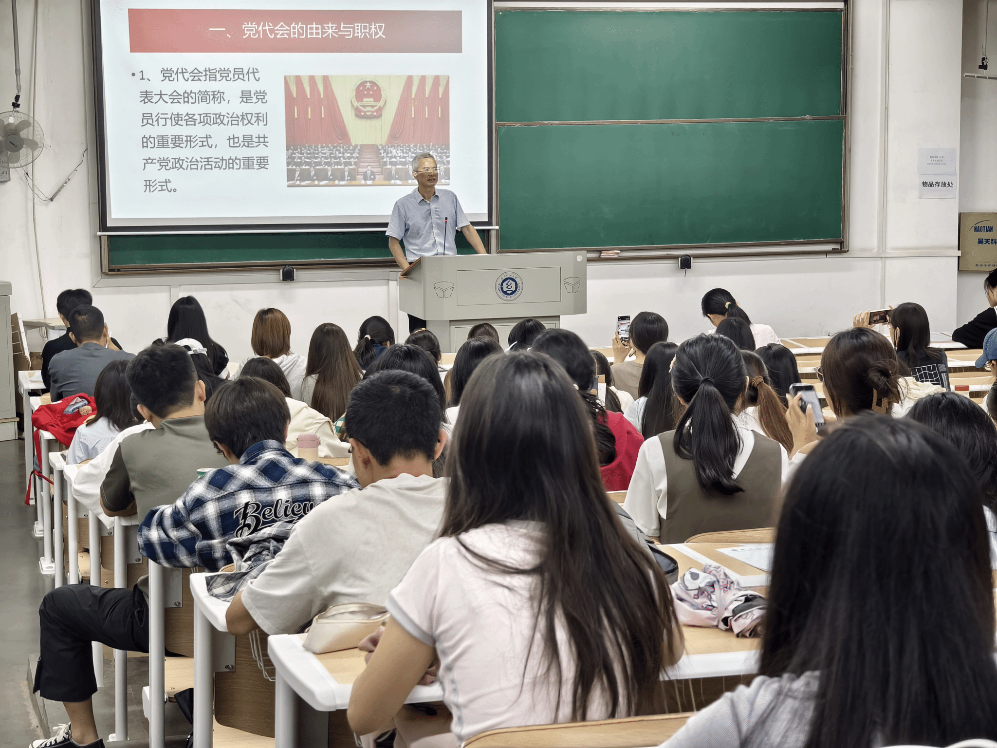 段溢波首先向同学们介绍了党代会的由来与职责。他指出,中国共产党全国代表大会和它所产生的中央委员会为中国共产党最高领导机关。每五年举行一次,由中央委员会召集。党代会是听取和审查中央委员会、中央纪律检查委员会的报告、讨论并决定重大问题、修改党章、选举党的领导机构。随后,他带领同学们一起回顾了历届党代会。从党的一大宣告中国共产党成立,到党的二十大擘画中国式现代化蓝图,每一次党代会都承载着时代赋予的使命和责任。党代会不仅是总结过去、规划未来的重要时刻,也是凝聚全党智慧、统一思想行动的关键节点。