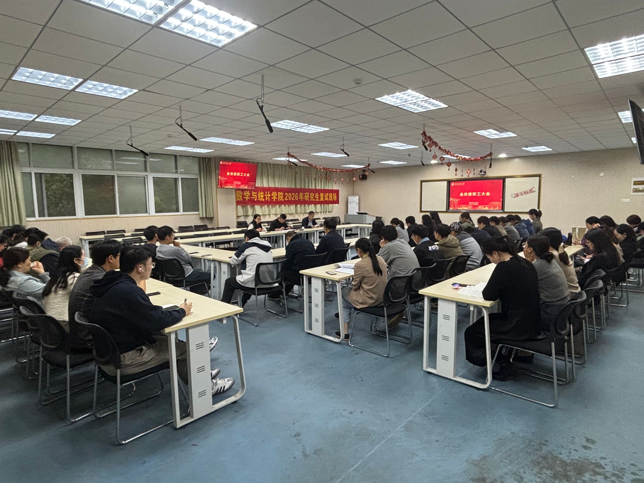在04-205召开全体教职工大会。学院全体教职工参加会议,院党委书记李楠主持会议。