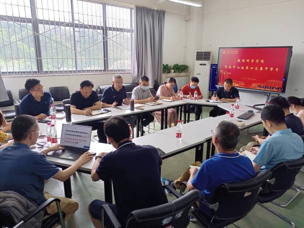 6月9日下午,数理科学学院党委理论学习中心组(扩大)第四次集中学习在阳光校区4栋202B室召开,学院党委委员、分工会主席、系(中心)主任、支部书记、教授委员会主任、督导组组长等参加学习。会议由学院党委书记段溢波主持,学院党委副书记陈国鹏领学。