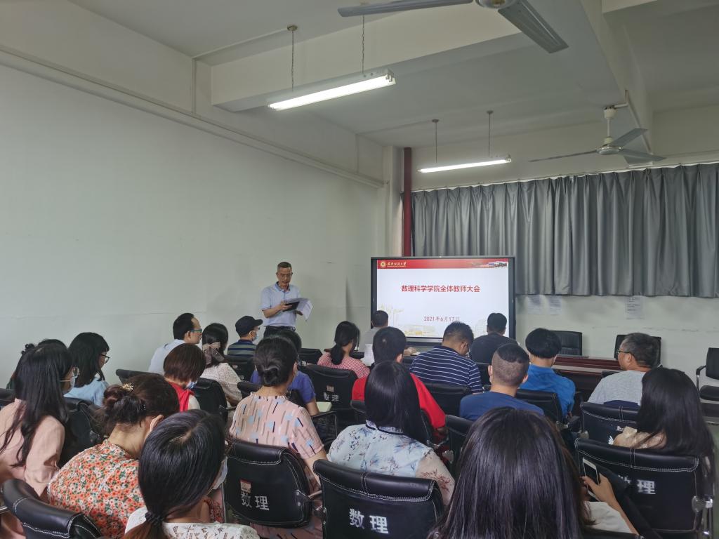 6月17日下午,数理科学学院召开全院教职工大会,党委副书记段溢波主持会议。