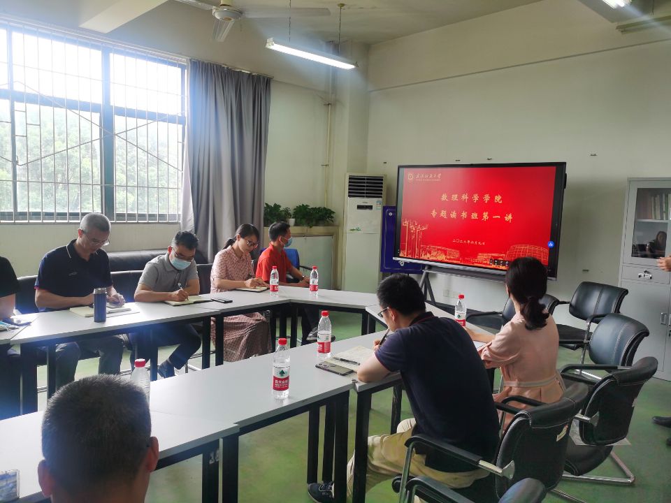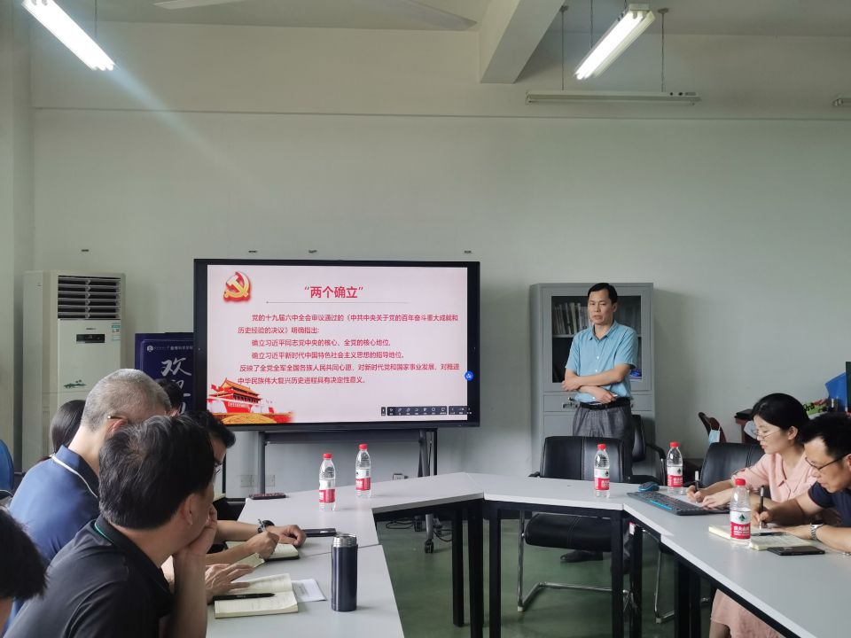 6月9日下午,数理科学学院举办“专题读书班”第一讲,学院党委委员、工会主席、系(中心)主任、党支部书记、教授委员会主任、教学督导组组长等参加学习,信息与计算科学系党支部书记仇华海以《深入学习领会“两个确立”的决定性意义》为主题领学,学院党委书记段溢波主持了学习活动。
