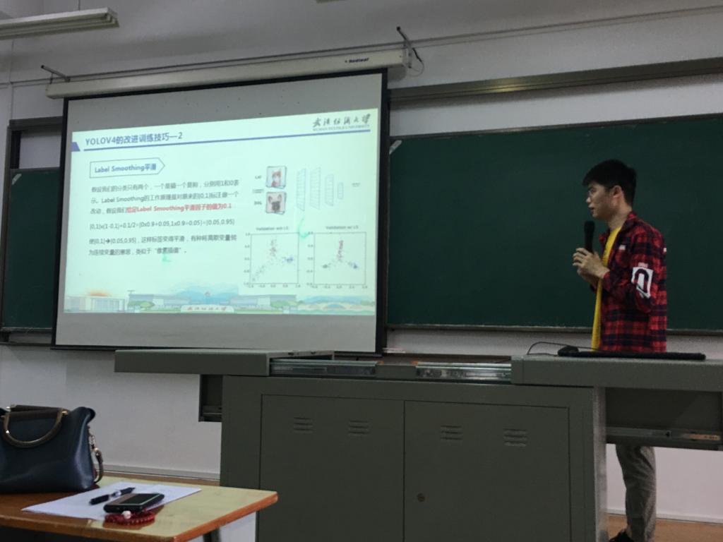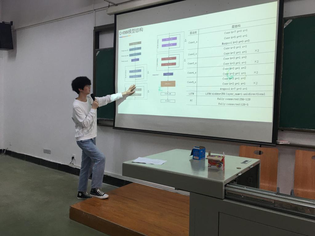 3名本科生做了主题报告。信息11701班张逸轩报告的题目是《基于深度学习的癫痫疾病分类研究》,介绍了批归一化和残差结构,搭建了CNN为基础的网络模型和CNN与RNN相结合的网络模型,通过实验得出CNN与RNN相结合的模型在脑电信号分类任务中表现更好;应数11701班吴东成报告的题目是《我国文娱业发展及影响因素分析》,他简要介绍了我国文娱业发展现状,然后对生产要素、市场需求、关联产业、政府作用等因素进行因子分析、回归分析,建立多元回归模型,经过聚类确定主要的影响因素;信科11701班郝振扬同学报告的题目是《基于YOLO深度神经网络的童装LOGO识别》,从当前在童装logo识别领域的发展状况出发,分析了童装logo识别的研究意义,提出了基于yolov4深度神经网络的童装logo识别技术,从输入端到输出端完整的分析了yolov4网络结构的实现过程、原理及训练技巧,最后回顾总结,分析了模型中存在的问题以及待改进的地方。