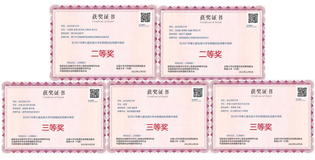 近日,全国第七届大学生物理实验创新设计大赛决赛圆满结束。我校5支代表队在本次大赛中喜获二等奖2项、三等奖3项,创我校参赛以来最佳成绩。