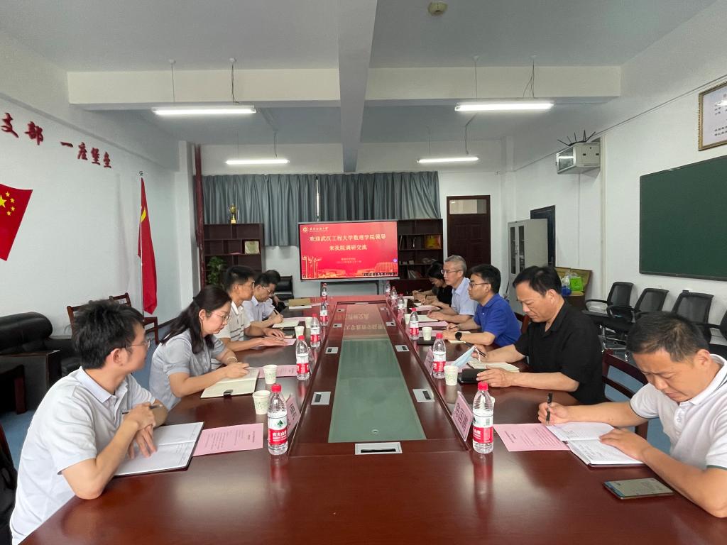 会议伊始,段溢波书记对武汉工程大学数理学院一行到学院调研表示热烈欢迎。他表示,两个学院一直以来保持着良好联系沟通,这次交流将进一步加深双方了解并促进双方发展。汪胜祥院长为来访嘉宾简要介绍数理学院基本情况。随后,郑仟副院长从人才引育、学科建设、科学研究、研究生培养等方面全面介绍了学院工作。