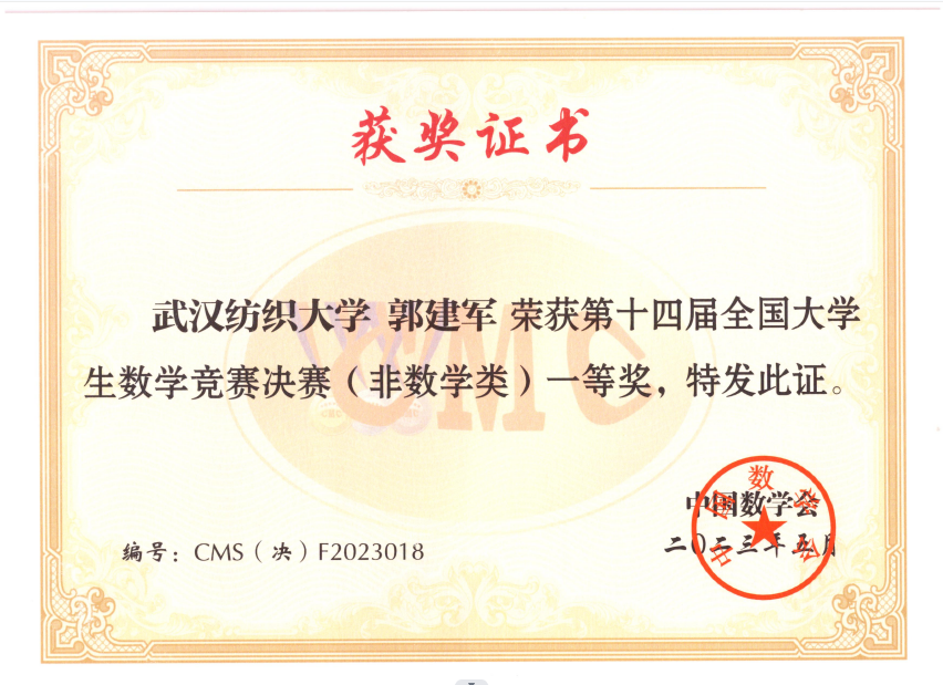 (毛耀老师指导的学生获得第十四届全国大学生数学竞赛一等奖)