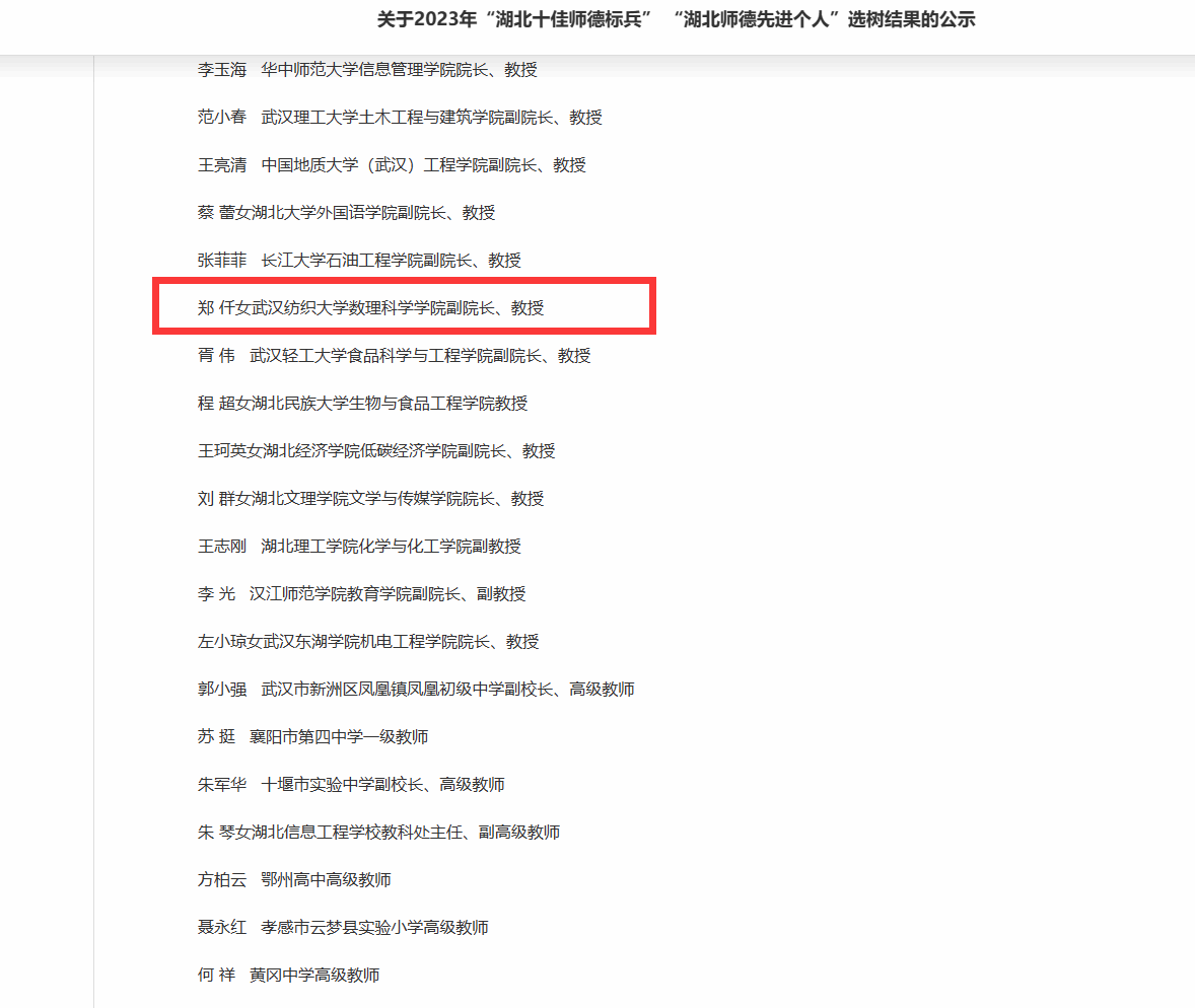 第三届全国高校教师教学创新大赛一等奖、学校历史上影响因子最高的论文、入选全球前2%顶尖科学家榜单“终身科学影响力排行榜”及“年度科学影响力排行榜”、牵头组建湖北省孤立子研究会、中国大学生数学竞赛优秀指导老师、湖北省青年拔尖人才、湖北省师德先进个人、2名教师晋升教授......2023年,数理科学学院各类人才脱颖而出,学院“人才兴院”战略初现成效。