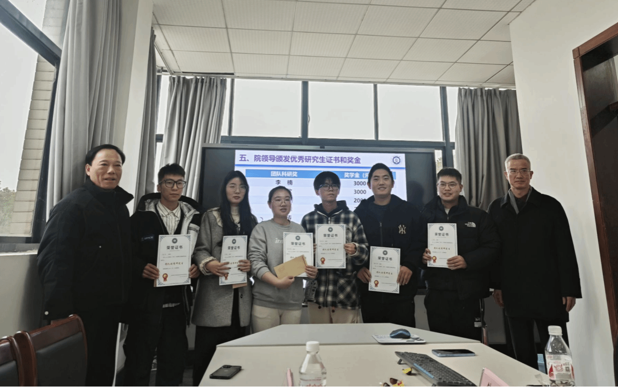 为鼓励先进、树立榜样,团队设立了研究生专项奖励,俞可欣等7名优秀研究生获得表彰。段溢波书记和许明耀副院长分别为获表彰的同学颁发了奖状及奖金,国家奖学金、一等学业奖学金获得者俞可欣同学作为优秀研究生发言。