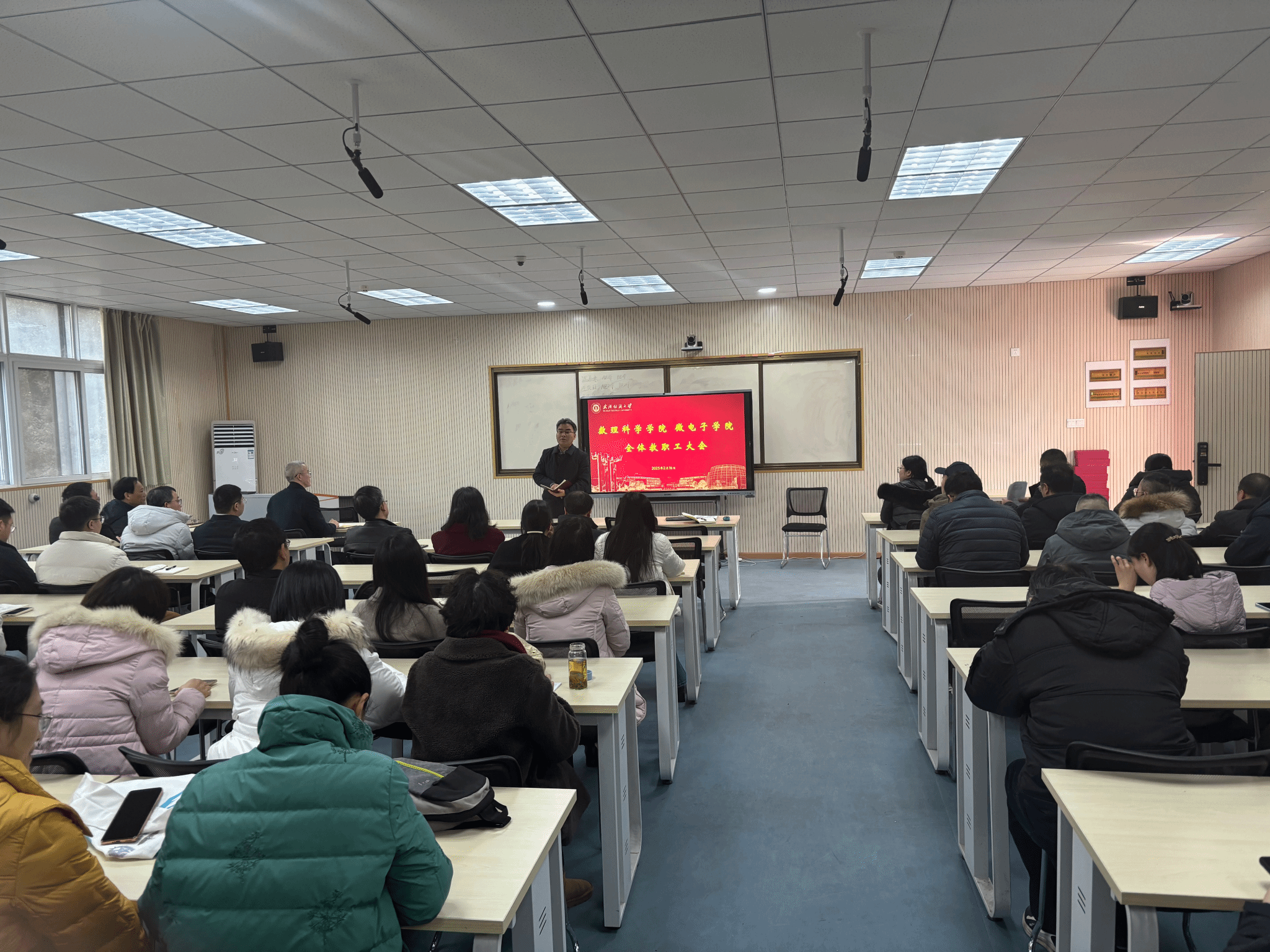 春风梳柳,地暖春风。2月16日上午,新学期伊始,为统筹安排新学期重点工作,推进学院高质量发展,数理科学学院、微电子学院在崇文楼205召开新学期工作会。全体教职工与会,学院党委书记段溢波主持会议。