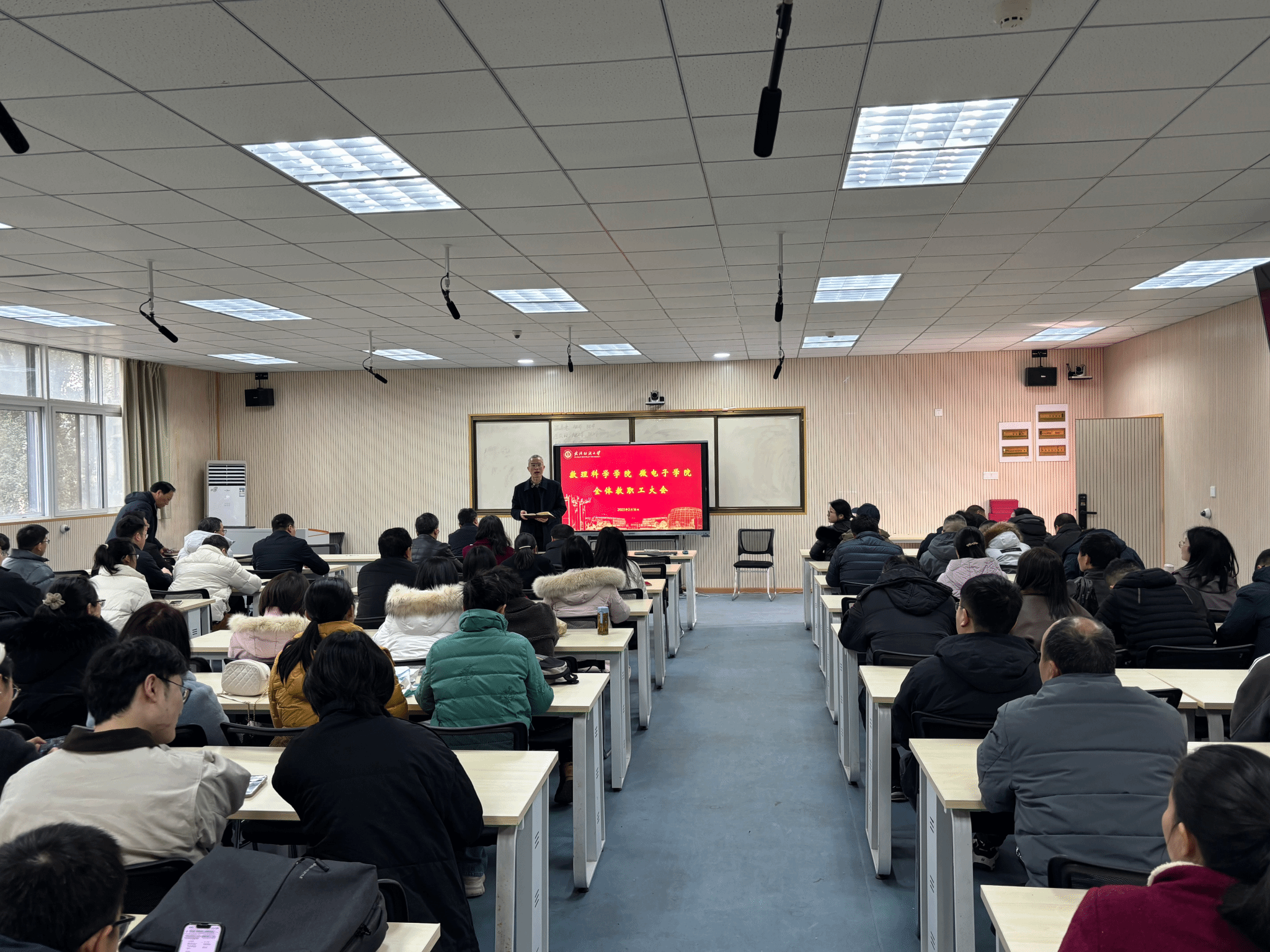 许明耀副院长传达了学校教学工作会议精神,布置了教学工作;郑仟副院长布置了科研、研究生工作;陈国鹏副书记布置了学院学生就业工作。