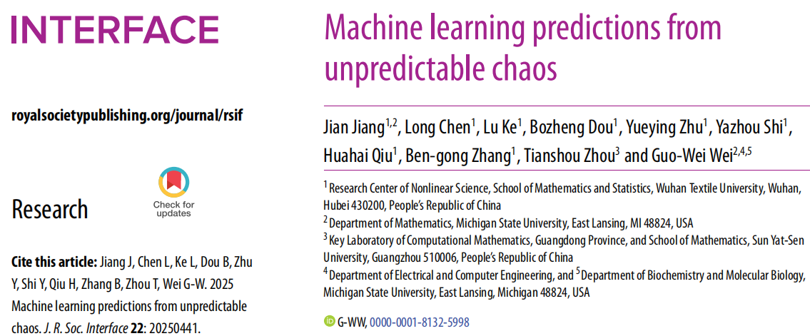 江健教授团队在药物设计方面取得重要研究进展。相关成果以“Machine learning predictions from unpredictable chaos”在物理科学与生命科学的交叉领域顶级期刊《Journal of the Royal Society Interface》上发表(J. R. Soc. Interface 22: 20250441, 2025,文章链接//doi.org/10.1098/rsif.2025.0441)。江健为第一作者,羞羞漫画