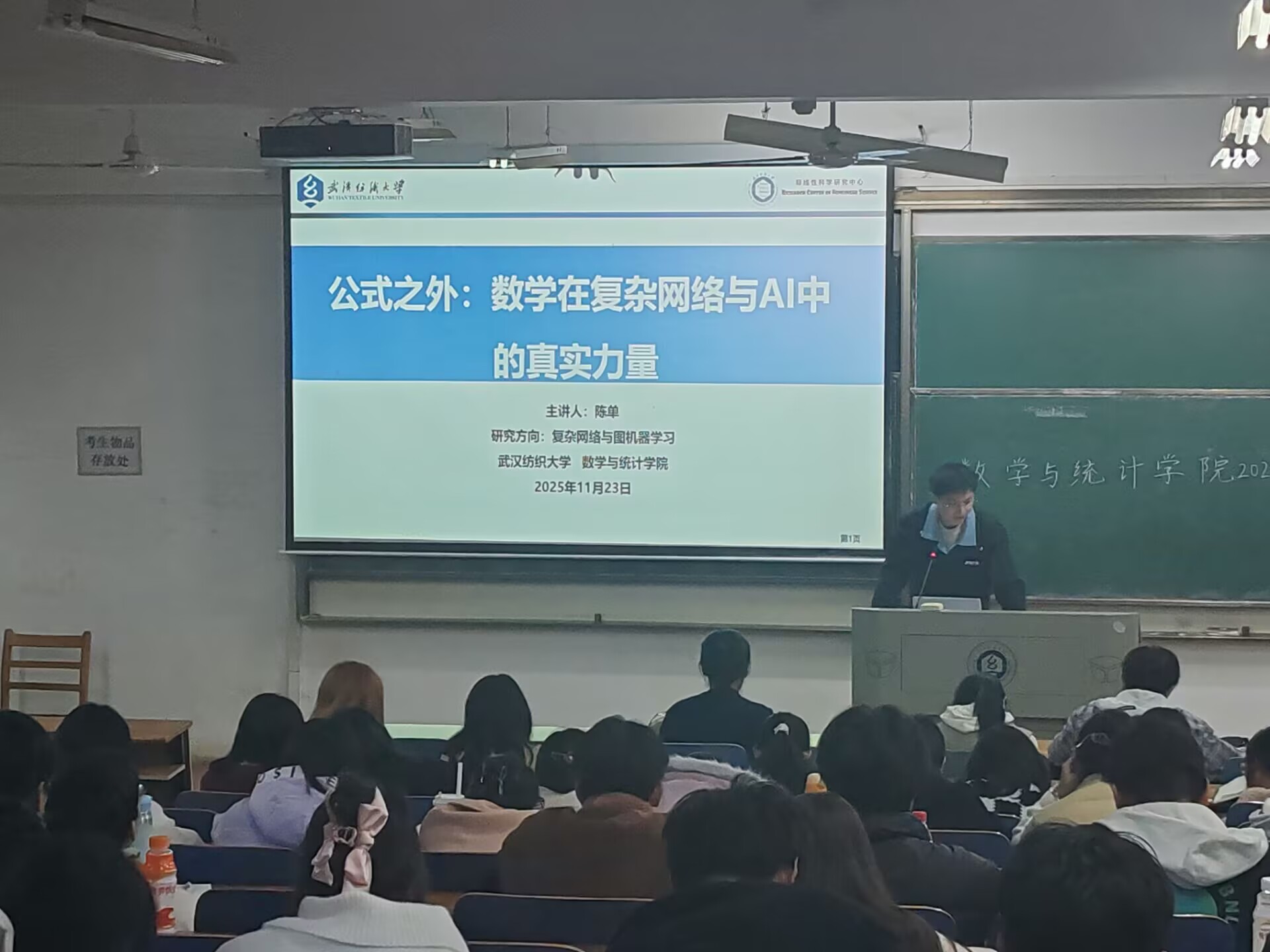 陈单博士以“公式之外:数学在复杂网络与AI中的真实力量”为题开展专题分享,深入剖析数学作为隐藏引擎,在复杂系统认知与人工智能发展中的关键作用,为在场听众揭开数学跨界应用的神秘面纱。