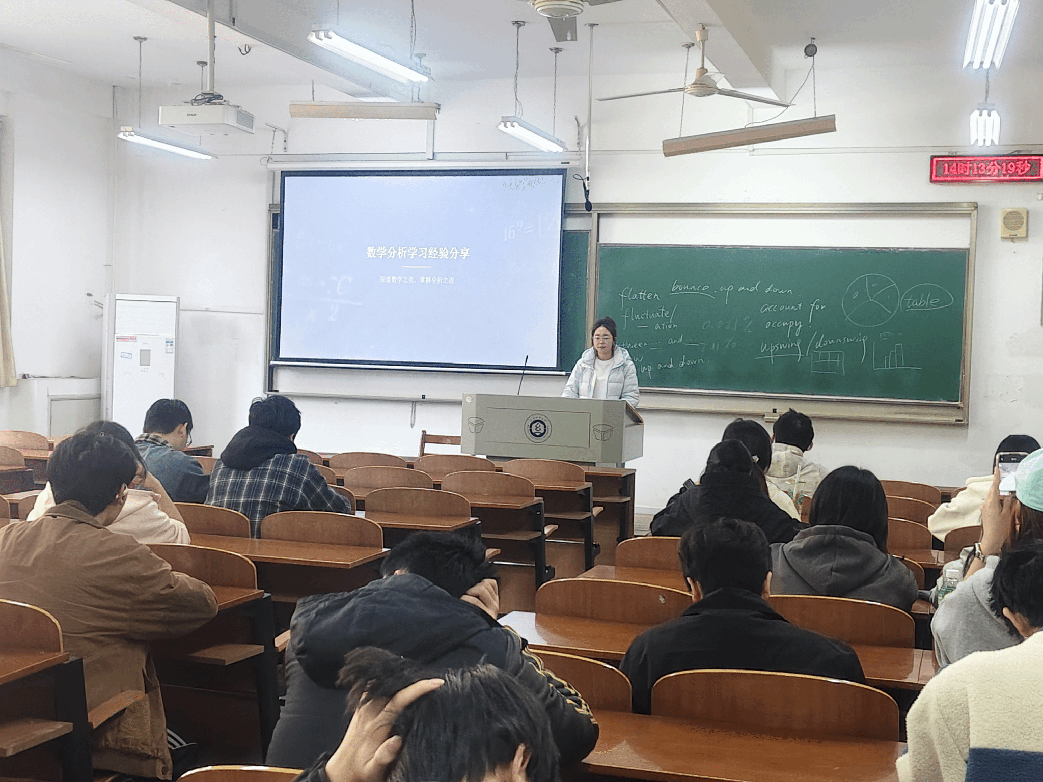 为助力24级应用数学专业学生把握竞赛核心要点,破解学习与备赛难题,2026年3月13日下午,一场聚焦竞赛经验与数学分析学习方法的本科生学术讲座成功举办,本次论坛由辅导员曾琦主持。来自应数专业的优秀学子齐聚一堂,围绕竞赛备赛、学习攻坚等关键内容展开深度分享,为24级应数学生带来了一场干货满满的经验交流。