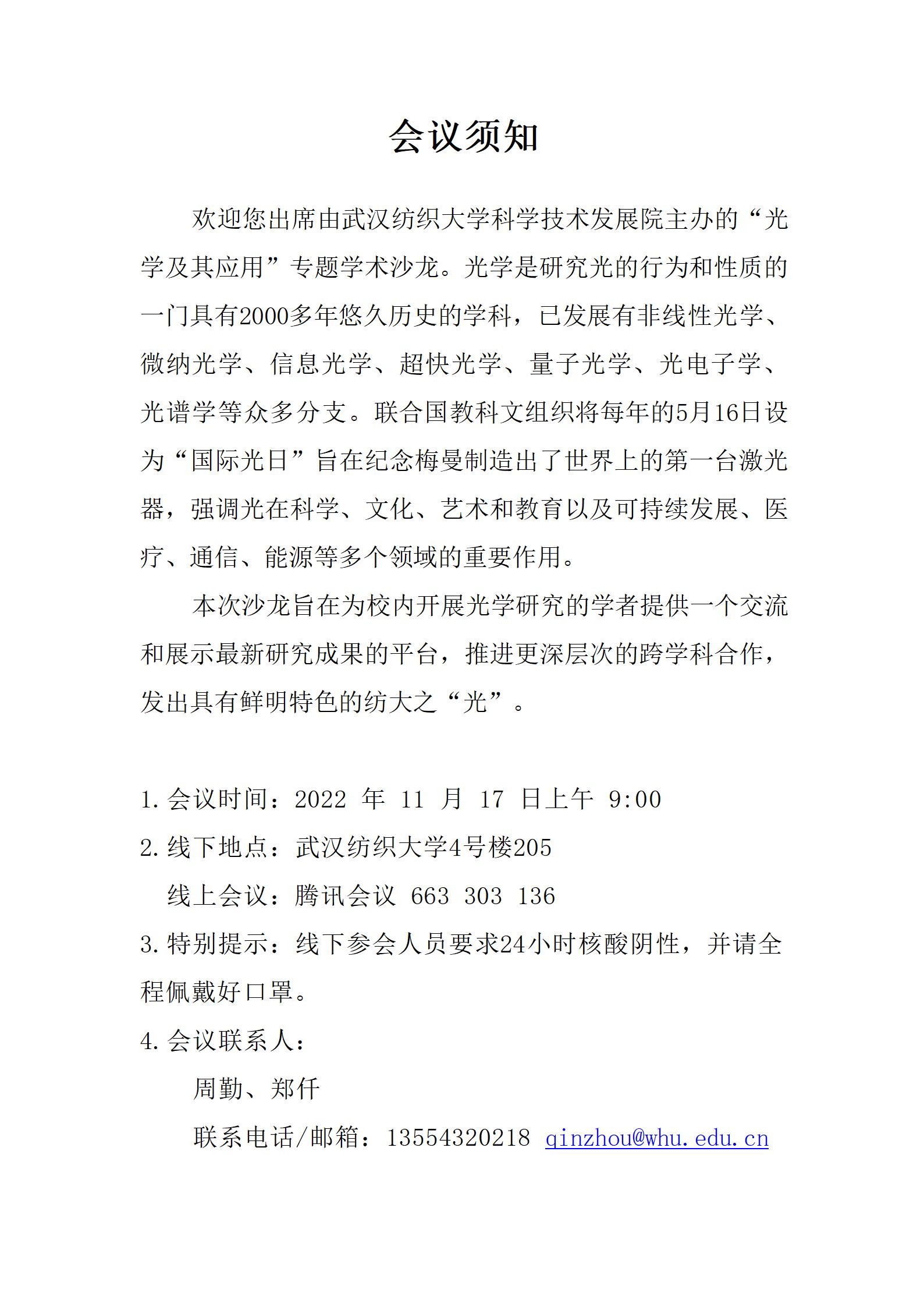 光学及其应用专题学术沙龙(第7期)