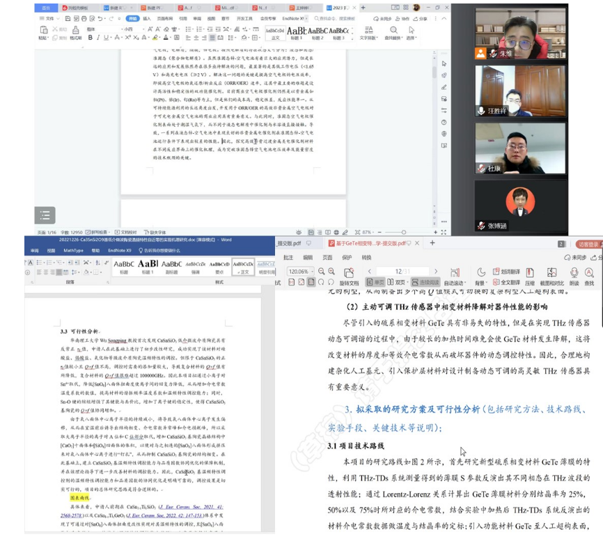 随后,朱维、王婷婷、汤思宇、杜康、张博涵5位青年教师分别对23年基金申报书内容和往年评审专家的意见,以文档形式进行了详细汇报。汪胜祥教授对每位青年教师的汇报内容和存在的问题逐一进行了细致解读,就学科填报、创新点凝练、可行性分析、导师联络等方面提出了一系列宝贵意见和建议。其他青年教师也认真听取同事的汇报,基于自身所了解和关注的方面提出了比较有代表性和建设性的意见,互相取长补短,集思广益。