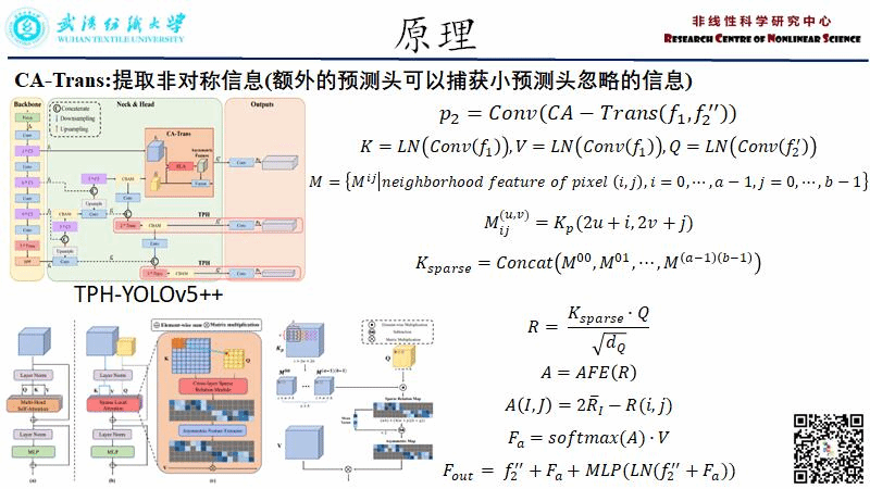 詹晨美:本次组会汇报了两篇文献《TPH-YOLOv5: Improved YOLOv5 Based on Transformer Prediction Head for Object Detection on Drone-captured Scenarios》和《TPH-YOLOv5++: Boosting Object Detection on Drone-Captured Scenarios with Cross-Layer Asymmetric Transformer》前者基于:1.无人机在不同高度飞行,目标尺度变化较大,给模型的优化带来了很大的负担。2.在无人机进行高速低空飞行时,会带来密集目标的运动模糊这两个问题,提出了改进的YOLOv5模型:TPH-YOLOv5。其在YOLOv5的基础上增加了一个prediction heads 来检测不同尺度的目标。使用了Transformer Prediction Heads(TPH)代替原来的prediction heads。
