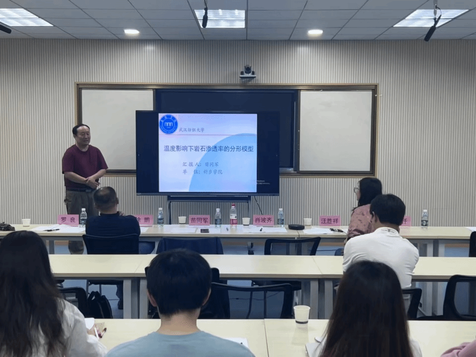 苗同军教授做了题为“温度影响下岩石渗透率的分形模型”的报告。他介绍温度影响下岩石渗透率的分形理论和分形模型。在岩石渗透率的研究中,温度相比应力对岩石的损伤更大,学界已把温度作为岩石流固耦合的一个重要因素。报告指出低温段温度增加时,孔隙率减小,孔隙面分形维数减小和迁曲度分形维数增加,岩石渗透率随温度增加而减小。高温段温度增加时,原有裂缝或孔隙延伸,孔隙率增大,孔隙面分形维数和迂曲度分形维数变化复杂。