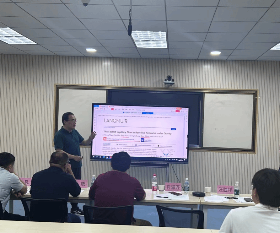 肖波齐教授做了题为“受损分形树状分支网络渗吸机理研究”的报告。该报告探讨了受损分形树状分支网络渗吸机理的研究。本研究基于分形几何理论,建立了受损树状网络中渗吸势和无量纲渗吸时间的分形解析模型,分形解析模型表示为受损通道数、分支数、长度分形维数和直径分形维数的函数。受损树状网络中的无量纲渗吸时间随着受损通道数的增加而減小,存在最优长度分形维数和最优直径分形维数。