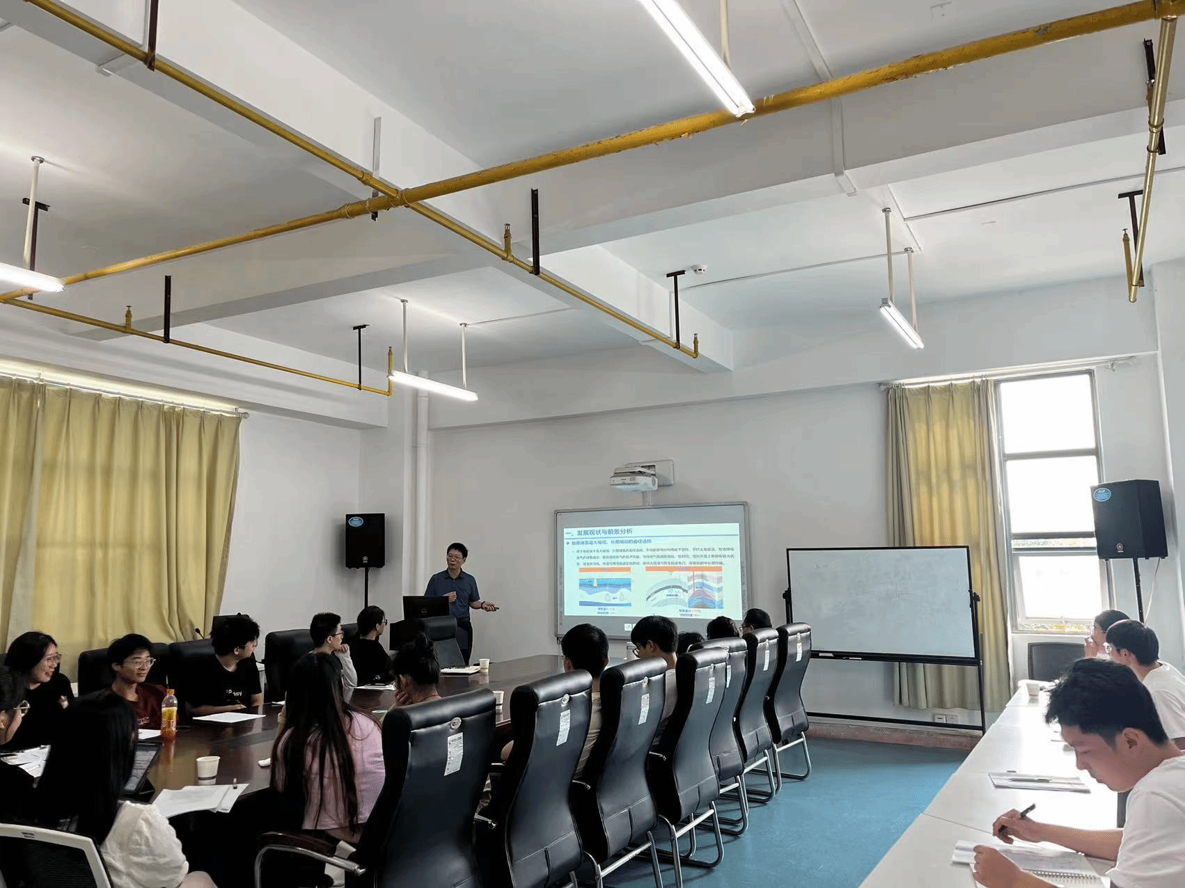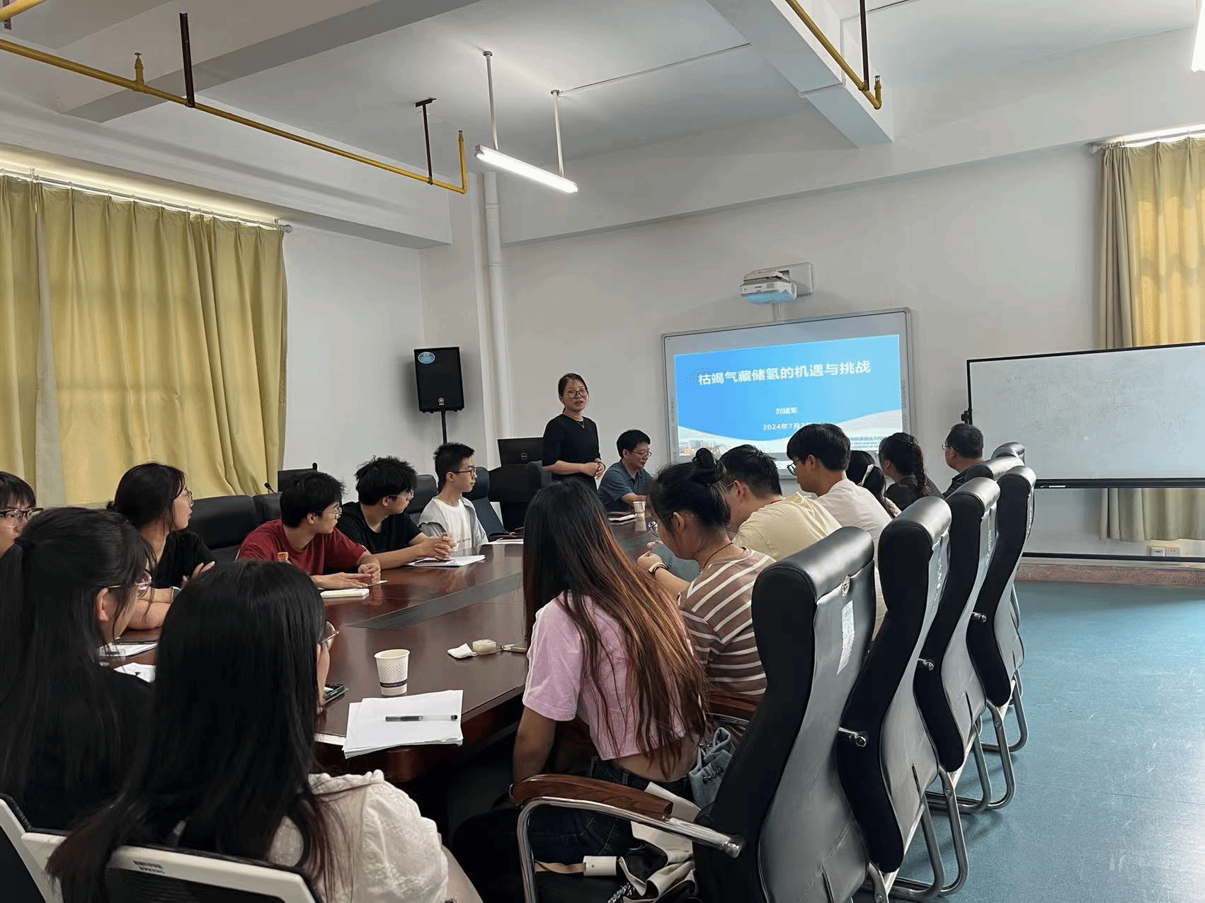 报告结束后,师生们踊跃发言提问,就报告中的具体问题及枯竭气藏储氢发展趋势与刘建军研究员进行了深入交流。本次学术交流活动气氛融洽、研讨充分。与会师生纷纷表示,要积极拓宽自己的学术视野,努力提升自身的科研水平。最后,副院长郑仟对刘建军研究员莅临指导再次表示欢迎和感谢。她强调了组织专题会议的重要性。一方面使学院的学术氛围更加浓厚,另一方面进一步推动了各学科间的交叉融合。