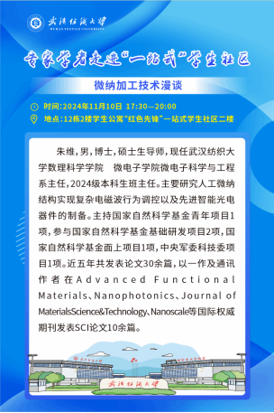 11月10日,朱维博士走进12栋“红色先锋”社区,以《微观世界的“眼”与“手”》为题,与同学们讲述微电子科学与工程,使大家加深了专业理解。微电子12401班同学,以及入住12栋、13栋的微电子专业部分学生参加了报告会。
