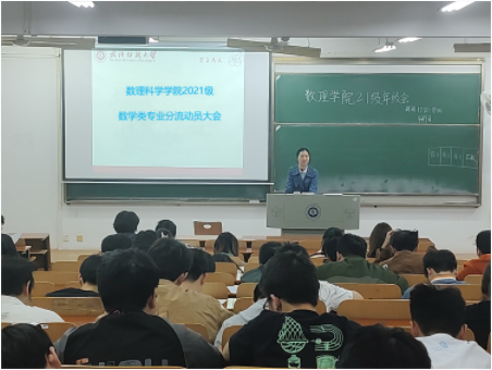 2022年4月9日,根据《数理科学学院2021级数学类本科生专业分流工作实施方案》的要求,我院为2021级数学大类专业四个班的本科生举行了专业分流动员大会,并进行了专业分流指导讲座。