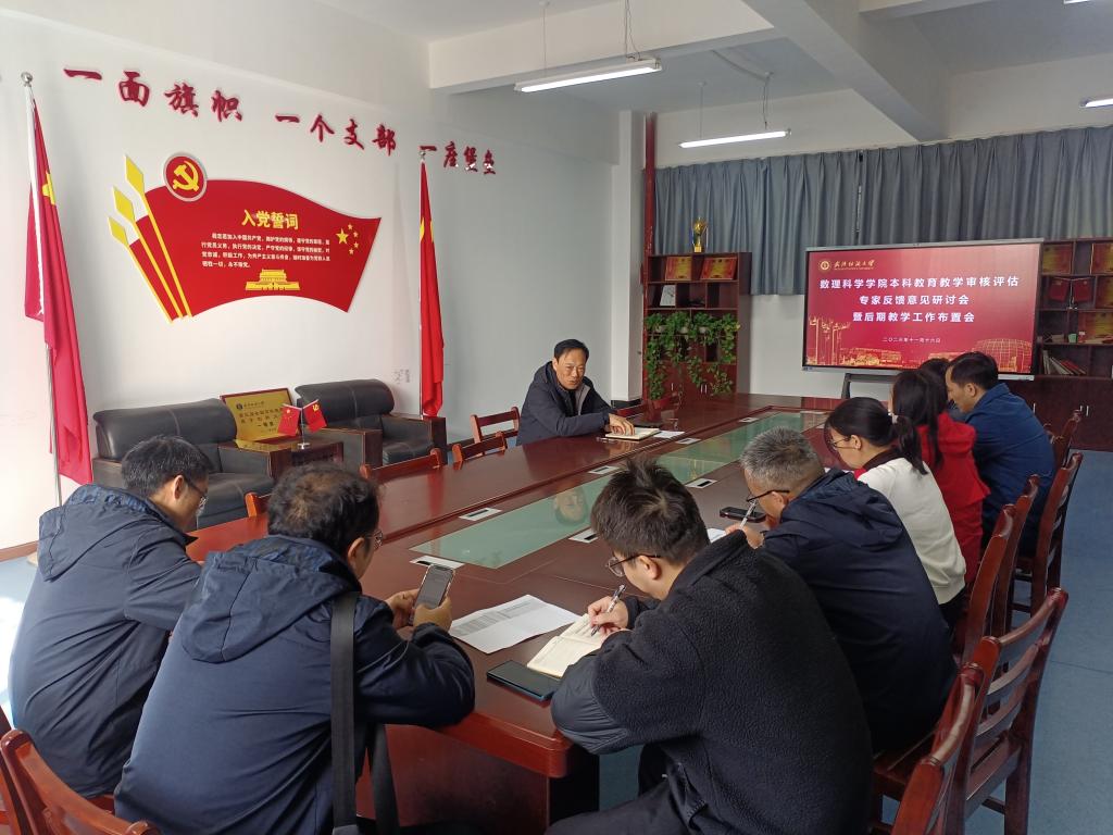 许明耀院长首先感谢了各位老师在本科教育教学审核评估中的辛勤努力。正是因为各位老师的吃苦耐劳,全力以赴,学院才能顺利的完成本次评估工作。然后,许院长介绍了在线上线下审核评估中各位专家发现的问题和提出的意见,如试卷管理、成绩评定、课堂教学、课程设计等。