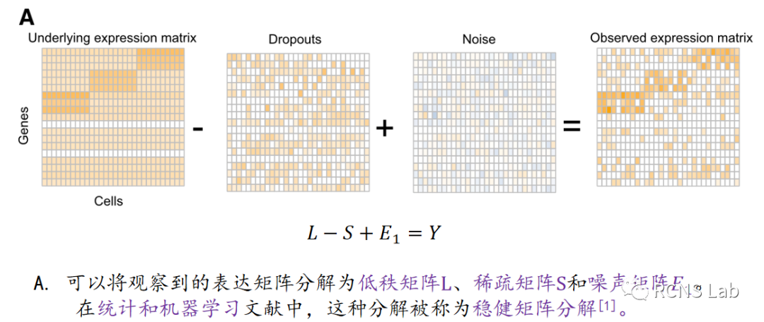 王梦园:本次汇报的文献为《scRMD:基于稳健矩阵分解的单细胞RNA-seq数据插补》,单细胞RNA测序(scRNA-seq)技术能够在单细胞分辨率下对整个转录组进行分析,然而,scRNA-seq常常不能捕捉到表达的基因,导致突出的“缺失”现象。这些缺失在下游分析中造成了许多问题。本文提出的方法scRMD可以将观察到的表达矩阵分解为低秩矩阵L、稀疏矩阵S和噪声矩阵E1,通过使用ADMM(交替方向乘子法)求解最小化噪声项这一优化问题来估计L和S,从而实现单细胞转录组测序数据中的缺失值插补。实验结果表明,即使是在缺失率超过百分之八十的实际数据中,scRMD执行的效果也相当好。